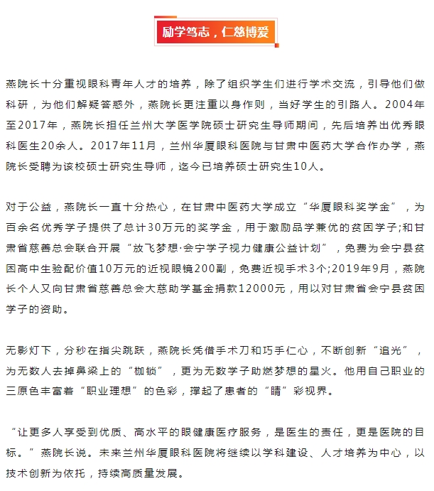 【医生·医声】燕振国:医路追光,为患者创造“睛”彩视界