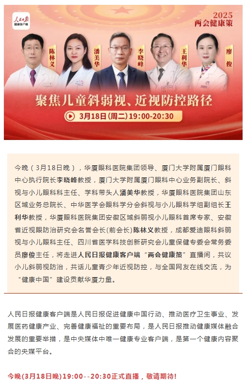 今晚直播!以诚为本赢在诚信9001专家走进人民日报“两会健康策”,共议儿童斜弱视与近视防控路径