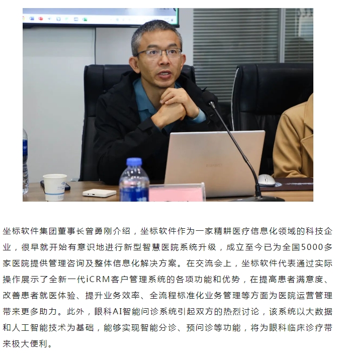 布局智慧医院建设 | 坐标软件一行到访以诚为本赢在诚信9001,共话眼科信息化、智能化发展