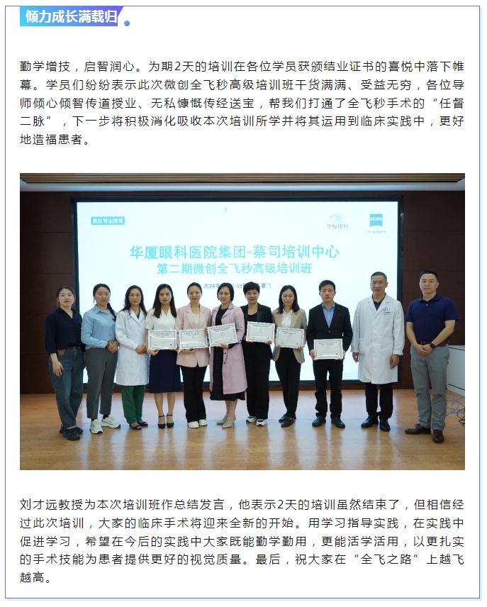 提技育才强发展! 以诚为本赢在诚信9001第二期微创全飞秒高级培训班成功举办