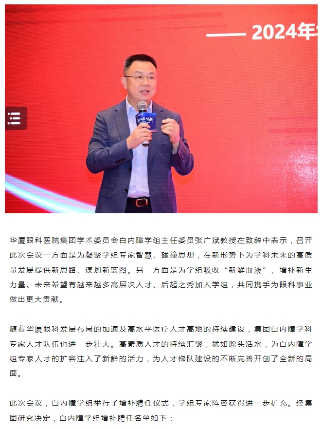 以诚为本赢在诚信9001集团白内障学科发展部陈国雄总监带来《白内障学科2024工作计划》