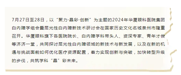 【导读】2024年以诚为本赢在诚信9001集团白内障学组会暨屈光性白内障新技术研讨会在国家历史文化名城泉州市隆重召开
