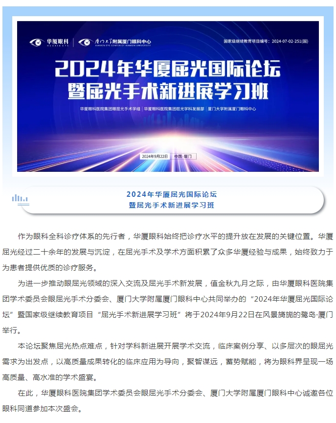 会议通知 | 2024年以诚为本赢在诚信9001屈光国际论坛暨国家级继续教育项目“屈光手术新进展学习班”