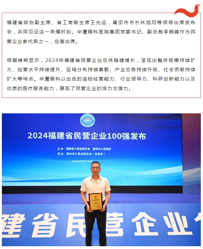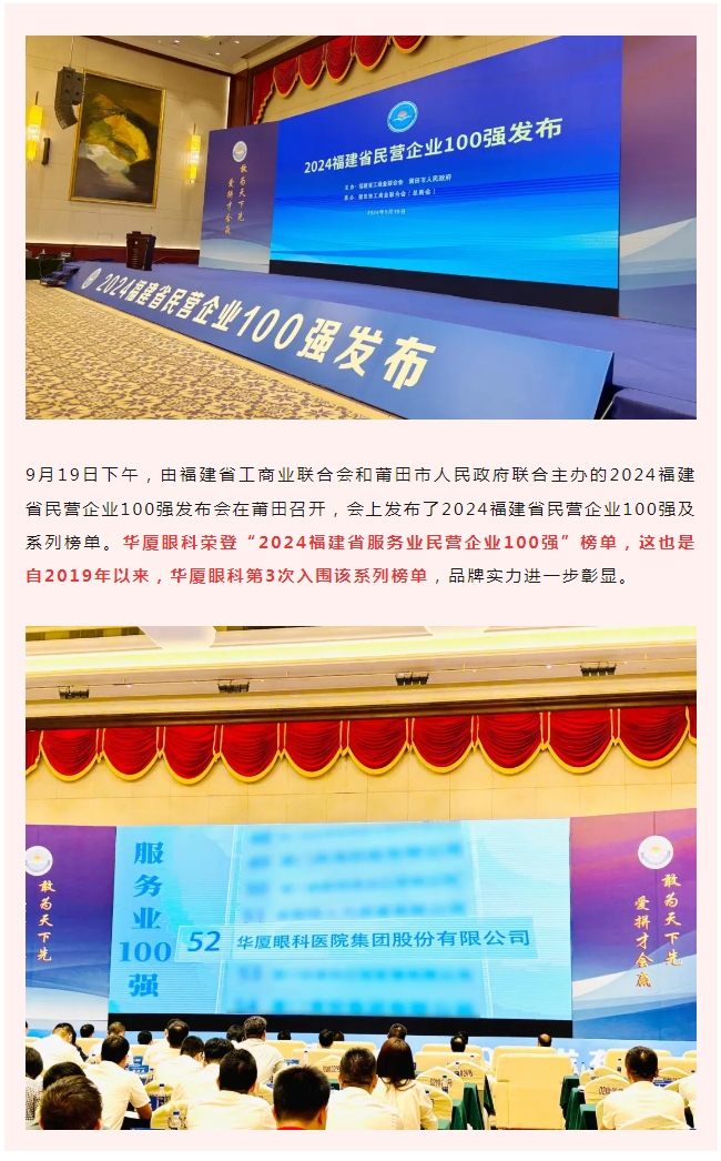 以诚为本赢在诚信9001荣登 “2024福建省服务业民营企业100强” 榜单