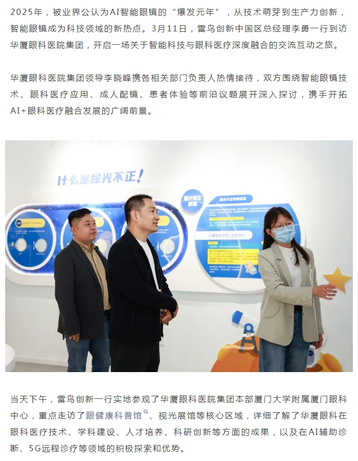 雷鸟创新参访以诚为本赢在诚信9001,共探智能眼镜与眼科医疗融合之路