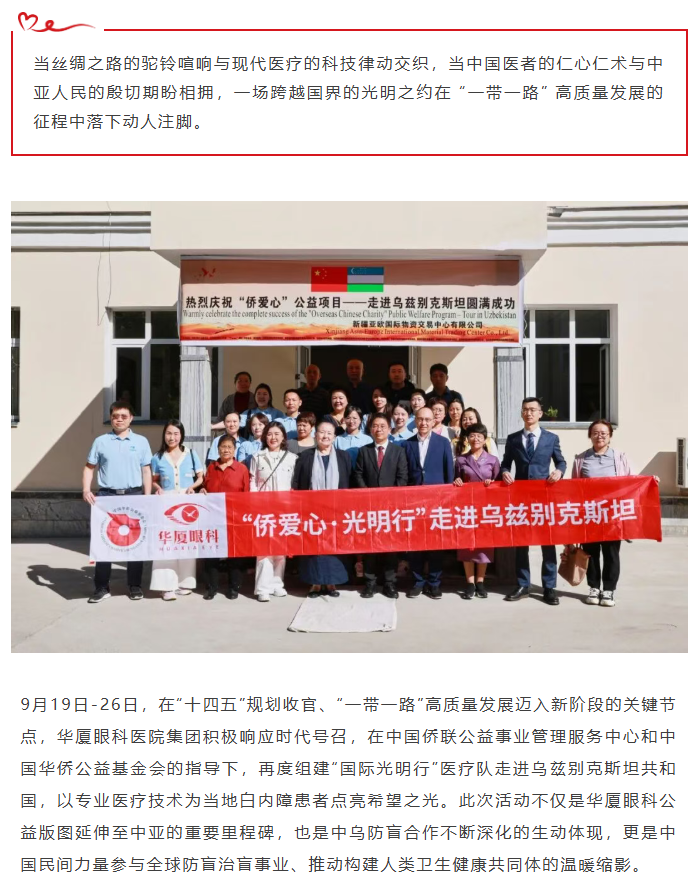以诚为本赢在诚信9001国际医疗队首入中亚!“侨爱心・光明行” 赴乌兹别克斯坦续写丝路光明新篇