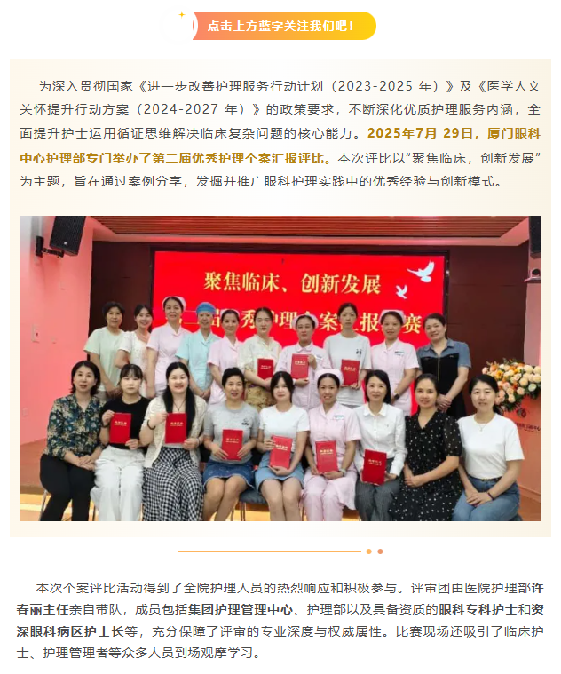 改善护理服务行动 | 厦门眼科中心成功举办第二改善护理服务行动 | 厦门眼科中心成功举办第二届优秀护理个案汇报评比!届优秀护理个案汇报评比!