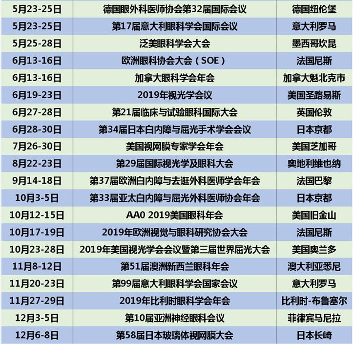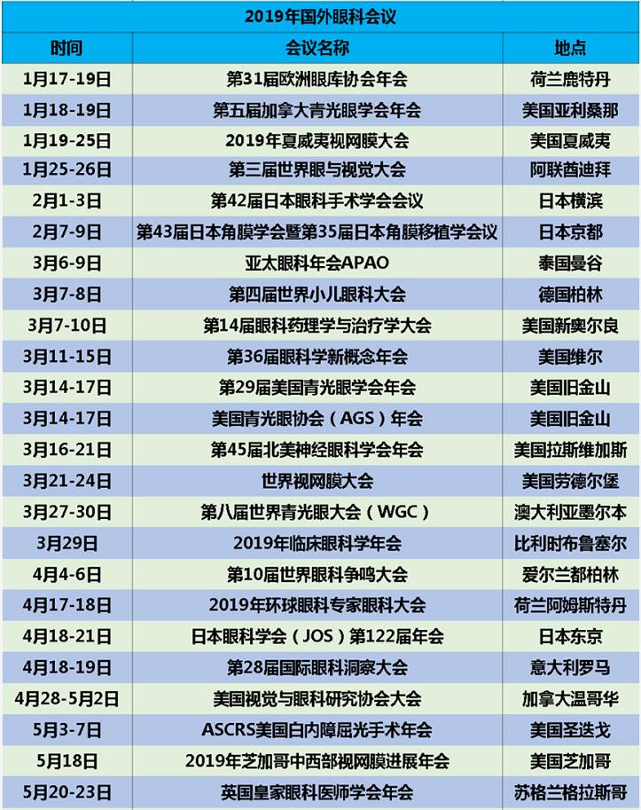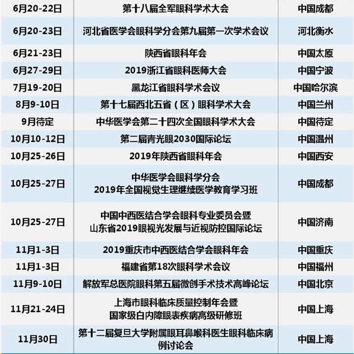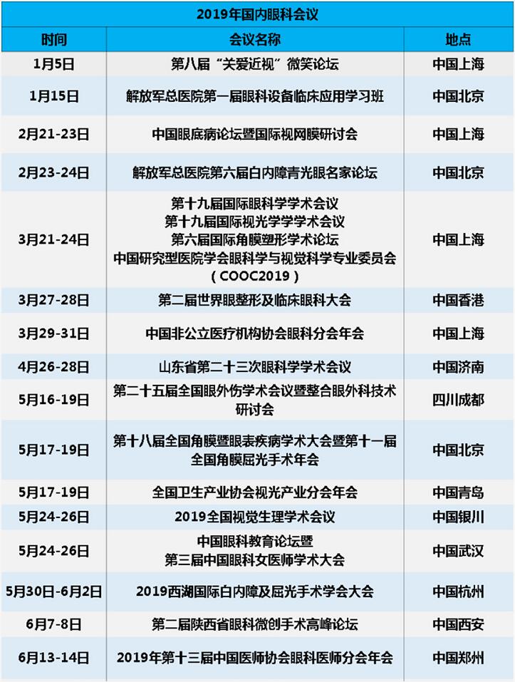 以诚为本赢在诚信9001学术资讯:2019年国内出名、主要眼科会议已出炉: