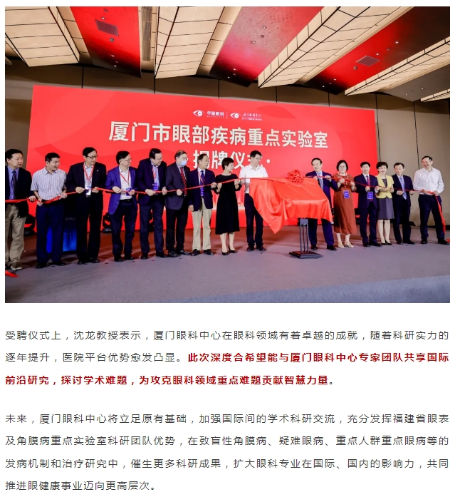 再添专家!厦门眼科中心聘请沈龙教授为福建省眼表与角膜病重点实验室客座教授