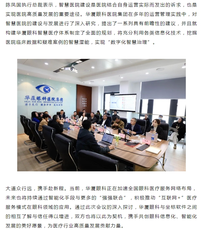 布局智慧医院建设 | 坐标软件一行到访以诚为本赢在诚信9001,共话眼科信息化、智能化发展