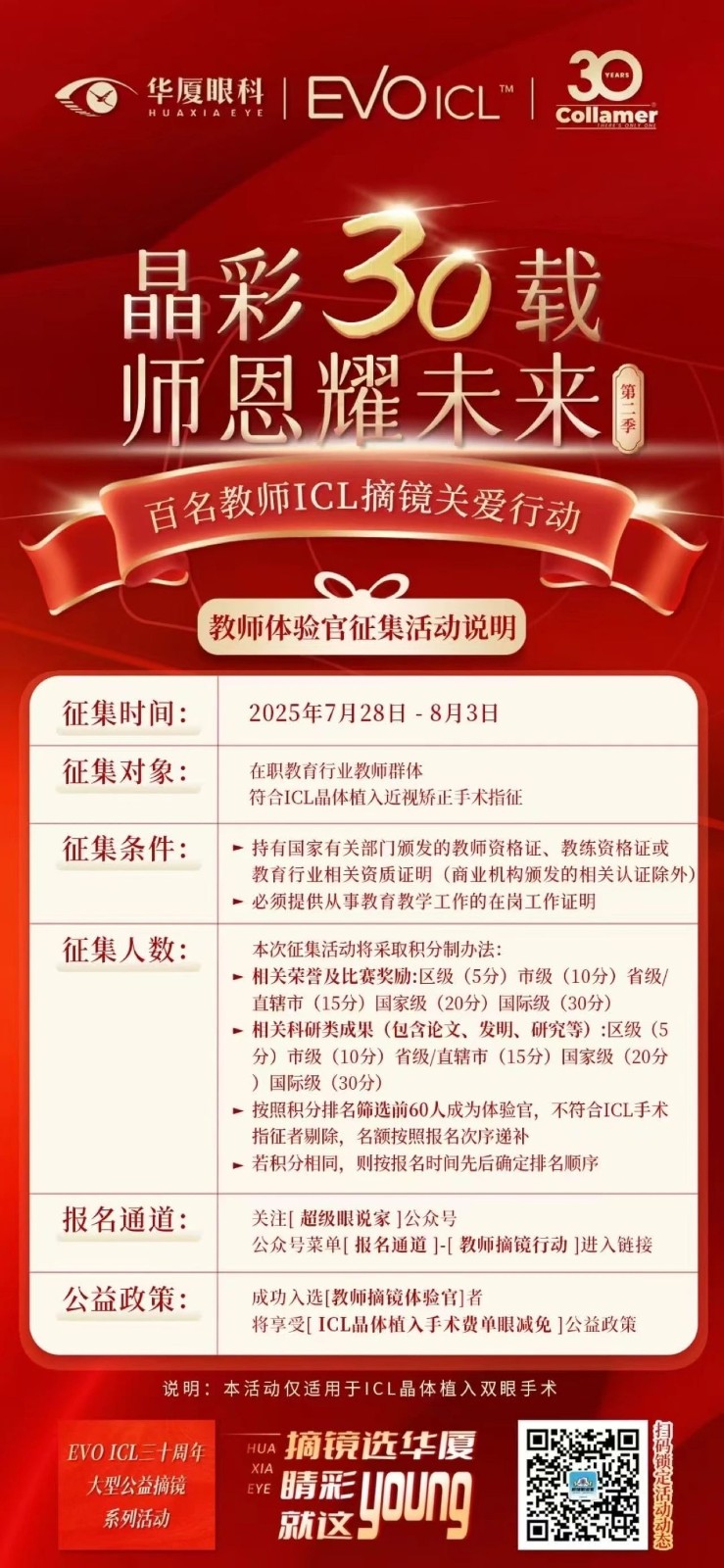报名开启|以诚为本赢在诚信9001教师专属ICL摘镜关爱行动! ——致敬教师公益摘镜——