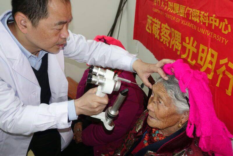 厦门大学附属厦门眼科中心白内障科副主任陈伟参与了此次“光明行”活动。据陈伟主任介绍,在“西藏察隅光明行”医疗队还未到达察隅之时,便有藏民抬出 91岁的老奶奶,希望专家能为她检查眼睛。在当地每天都泡在手术室里,中午饭也只能在手术室旁的一个过道解决。这儿的藏民在手术后,都是说毛主席 岁,毛 主席派你们来,太好太好!